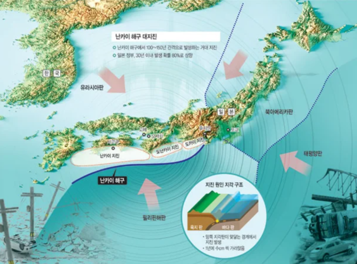 판 구조가 만나는 경계부에서는 지층이 서로 밀고 당기며 ‘응력’이 쌓인다. 이 응력이 한 번에 방출될 때 발생하는 것이 대지진이다. 지진 전문가들은 현재 도카라 열도 주변에서 비정상적으로 짧은 시간 안에 수천 회의 지진이 집중된 점을 주목하고 있다. 연세대 홍태경 교수는 “난카이 해구에서 규모 8.0 이상의 지진이 현실화되면 한반도도 500km 안쪽 거리로 영향을 받을 수 있다”며, 고층 건물 흔들림 등 피해 가능성을 경고했다.