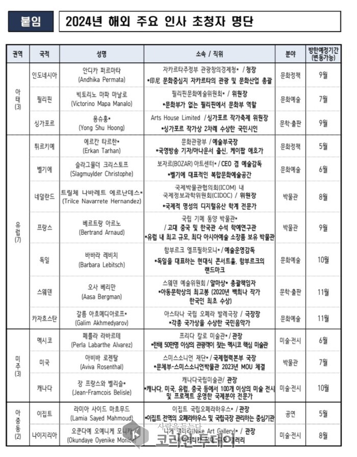 [코리안투데이]  2024년 해외 주요 인사 초청자 명단  © 송정숙 기자
