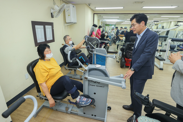 ![]() [코리안투데이] 재활치료 중인 구민과 소통 중인 이기재 양천구청장 © 변아롱 기자 |