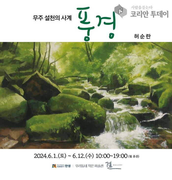 안성시는 지난 1일(토) 안성천 작은미술관(결 갤러리)에서 허순란 작가의 회화전 『무주 설천의 사계 풍경』을 개최했다. 이번 전시에서는 작가가 작업을 위해 머물렀던 전북 무주 설천의 풍경을 담은 작품 21점을 전시 중이다.