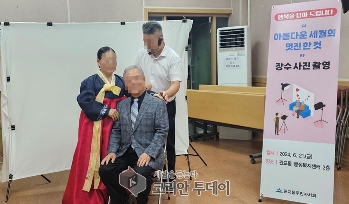 관교동 주민자치회 시범사업의 하나인 이번 행사는 어르신들의 장수를 기념하고 즐거운 추억을 마련하기 위해 사진 촬영이 진행됐으며, 전문 사진작가의 재능기부, 인천재능대학교 학생들과 주민들의 헤어 및 메이크업 지원 등 다양한 도움으로 행사의 취지를 더 했다.