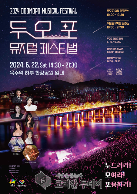 서울 성동구 옥수역 한강공원에서 600년 전 두모포 출정식이 열렸던 곳에서 이번 달 22일 ‘2024 두모포 뮤지컬 페스티벌’이 개최된다.