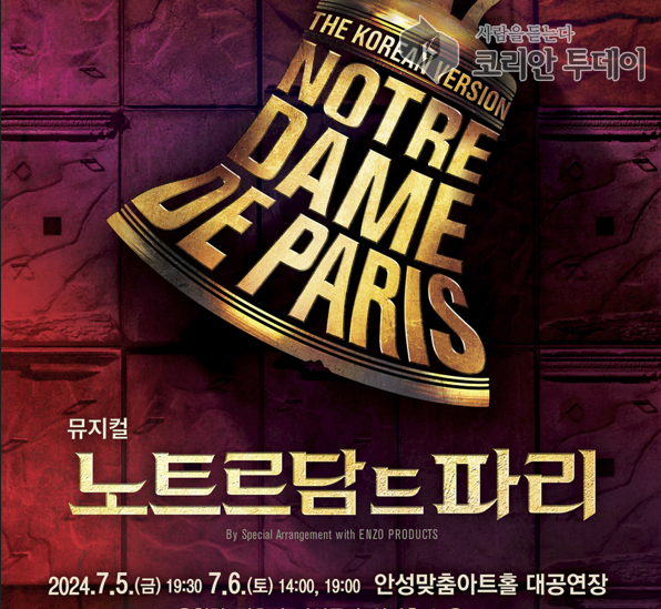 ![]() [코리안투데이] 안성맞춤아트홀, 뮤지컬 <노트르담 드 파리> 개최 포스터 © 이명애 기자 |
