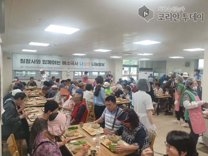 칠장사에서 지원하는 ‘혜소국사 나소향 나눔밥상’은 매월 마지막 주 목요일에 진행되며 안성지역 어르신들에게 무료급식을 제공하고 있다. 이번 행사에는 새마을부녀회(원곡면, 양성면), 함께 웃는여성봉사단, 보개면 까치봉사단의 자원봉사자 40명의 참여로 더욱더 풍요롭고 활기찬 행사로 진행할 수 있었다.