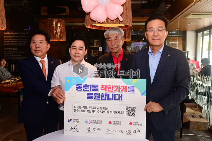 특히 ‘착한거리’ 안내판에는 동춘1동 착한가게의 가입 업체와 위치 등을 소개한 큐알코드를 삽입해, 방문하는 손님들에게 ‘기부를 통해 따뜻한 이웃사랑을 실천하는 착한가게’에 대한 정보를 쉽게 알 수 있도록 했다.