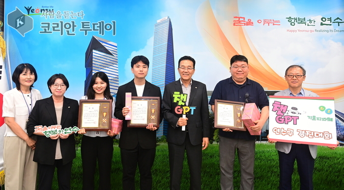 이재호 연수구청장은 “경진대회를 통해 공무원들이 AI를 활용할 수 있는 역량을 키울 수 있었다.”라며 “앞으로도 AI를 적극 활용하여 행정업무의 효율성을 높여 구민들에게 더 나은 서비스를 제공할 수 있도록 최선을 다하겠다.”라고 말했다.