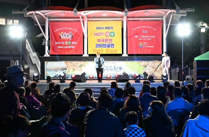 라이브 공연은 오는 10월부터 12월까지 부곡온천 한울공원에서 개최되며, 온천수 족욕과 온천수에 익힌 달걀 시식 등 다양한 체험행사도 즐길 수 있다. 상세 일정은 창녕군 누리집(www.cng.go.kr)을 참고하면 된다.