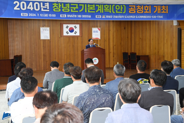 창녕군(군수 성낙인)은 지난 12일 창녕군청 대회의실에서 ‘2040년 창녕군기본계획(안)’에 대한 의견수렴을 위한 공청회를 성황리에 개최했다.