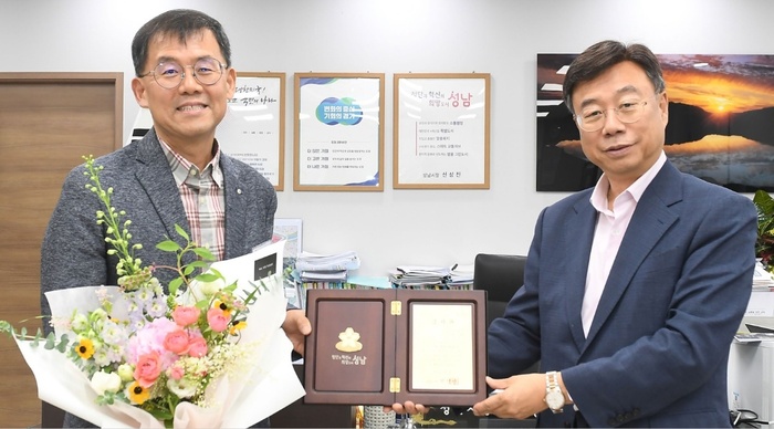 ![]() [코리안투데이] 성남시(시장 신상진)는 분당판교청소년수련관 수영장에서 물에 빠져 의식을 잃은 10대 박모 군을 인공 호흡으로 구조한 김재광 의사(왼쪽)에게 감사패를 전달했다. © 김나연 기자 |