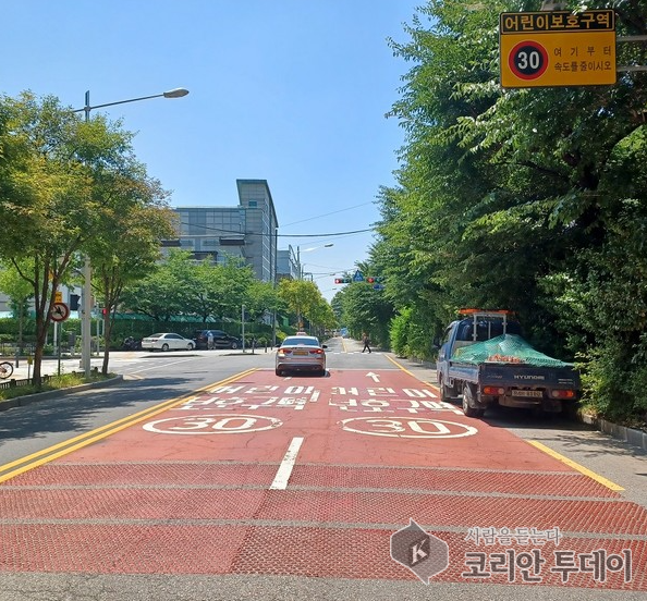 [코리안투데이] 송파구, 어린이보호구역 더 안전하게! 전국 최초 ‘도트무늬 미끄럼방지 포장’ 설치  © 지승주 기자