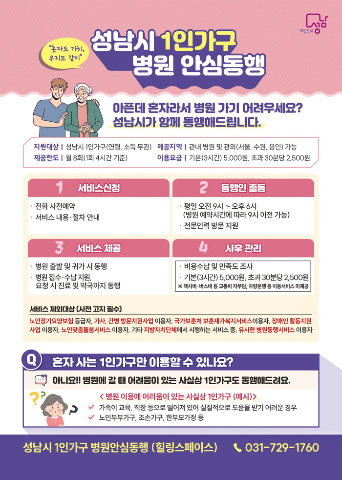 성남시, 1인 가구 병원 안심동행 사업 운영