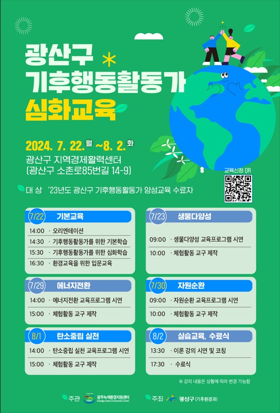 광주 광산구(구청장 박병규)는 탄소중립 실현과 기후 위기 대응을 위해 기후행동 활동가 심화 교육을 실시한다고