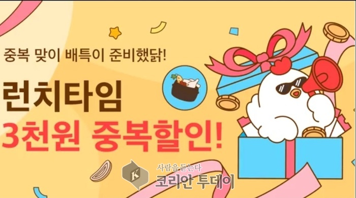 ![]() [코리안투데이] 초복 이어 중복도 배달특급이 ‘더하기 쿠폰’ 행사 포스터 © 김나연 기자 |