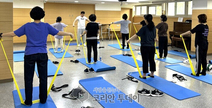 ![]() [코리안투데이] 지난 4월에 진행한 ‘조아.영 운동교실’ – 밴드로 스트레칭을 하고 있는 모습 |