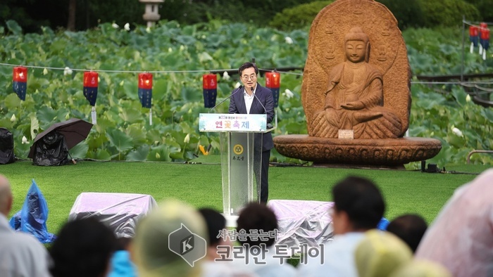 ![]() [코리안투데이] 제22회 봉선사 연꽃축제에서 김동연 경기도지사 인사말을 하고 있다. © 김나연 기자 |
