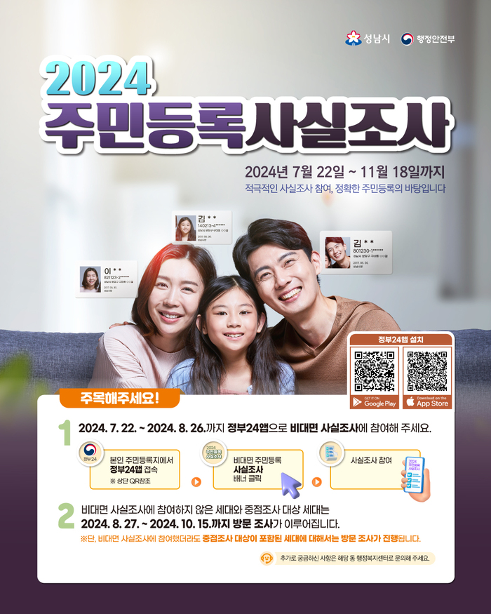 자세한 내용은 성남시청 홈페이지에 게시된 2024년 주민등록 사실조사 공고를 참조하면 된다.