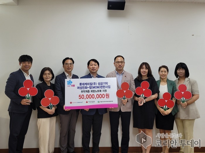 이번에 전달된 기부금은 의왕시 여성친화사업의 일환으로 한부모 가정 및 차상위 가정 자녀들을 위해 노트북 등 교육 기자재를 지원하는 데 사용될 예정이다. 김효진 경기 사랑의 열매 사무처장은 “아이들이 꿈을 향해 나아갈 수 있도록 지원해 주신 롯데케미칼에 감사드린다”며, “경기 사랑의 열매는 앞으로도 따뜻한 지역사회를 만들기 위해 다양한 사회공헌 활동을 추진하겠다”고 밝혔다.