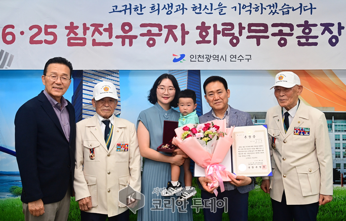 연수구(구청장 이재호)는 지난 296·25전쟁에 참전해 공을 세운 김수복 하사의 유가족에게 화랑무공훈장과 증서를 전달했다.
