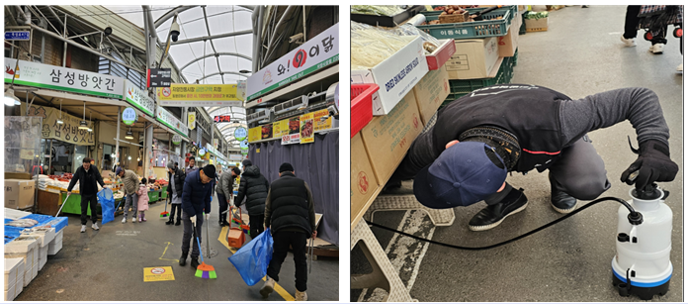 ![]() [코리안투데이] ▲ ‘전통시장 비우기의 날’에 청소 작업하는 상인들 ▲‘전통시장 비우기의 날’에 위생 방역 활동 © 안덕영 기자 |