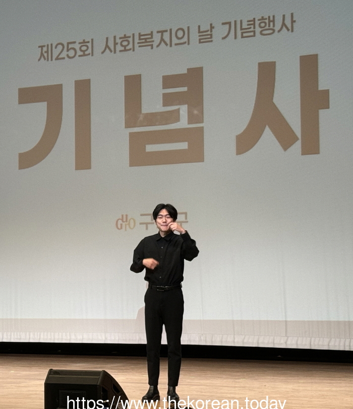 ![]() [코리안투데이] 사진 구로구 언론팀 제공 지난 사회복지의 날 기념행사에서 수어 통역을 하고 있 다. © 박수진 기자 |