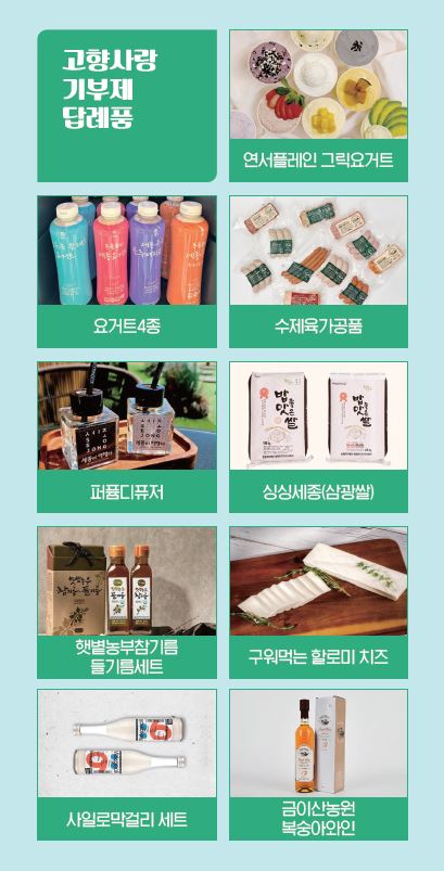 박대순 시민소통과장은 “지역 여건을 고려해 지속적으로 답례품을 확대·발굴할 계획”이라며 “기부자들에게 매력적인 답례품을 제공해 기부문화 확산에 기여하겠다”고 밝혔다.