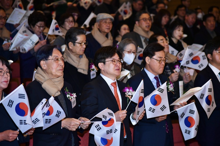 김포시는 3월 1일 오전 10시 30분, 김포아트홀에서 제106주년 3·1절 기념식을 개최했다. 올해 기념식은 예년과 달리 가족 단위 시민들의 참여가 두드러졌으며, 특히 김포 지역 초등학생들이 삼일절 노래를 부르고 만세삼창을 함께 외치며 독립운동의 의미를 되새기는 시간을 가졌다.