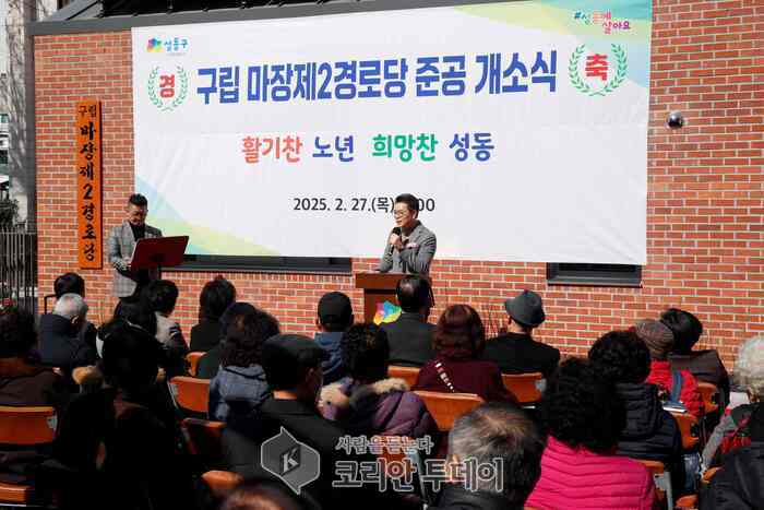 서울 성동구(구청장 정원오)는 지난 2월 27일 새롭게 건축된 마장제2경로당(마장로42길 13) 개소식을 개최하며, 지역 어르신들에게 더욱 안전하고 편안한 복지 공간을 제공한다고 밝혔다.