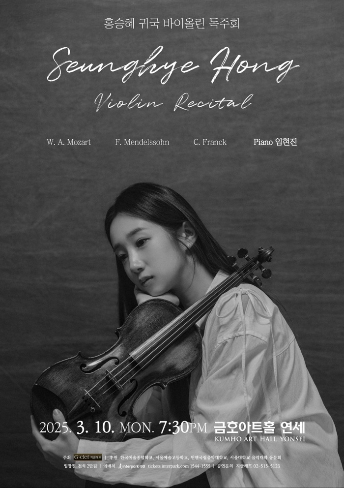 바이올리니스트 홍승혜의 귀국 독주회가 오는 3월 10일(월) 오후 7시 30분, 금호아트홀 연세에서 열린다. 이번 독주회에서는 W. A. 모차르트, F. 멘델스존, C. 프랑크의 바이올린 소나타가 연주되며, 피아니스트 임현진이 협연자로 나서 풍성한 음악적 감동을 선사할 예정이다.