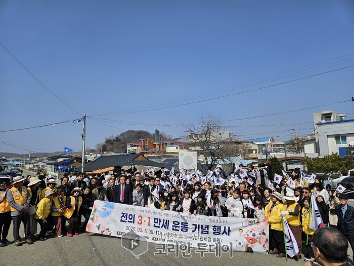 1919년 3월, 조국의 독립을 외치던 함성이 다시금 전의역 앞에서 울려 퍼졌다. 세종특별자치시 전의면이 3·1운동 106주년을 맞아 독립유공자 후손과 주민 200여 명과 함께 만세운동을 재현했다. 이날 행사는 전의향토문화선양위원회가 주최하고 전의면과 광복회 세종특별자치시지부가 후원해 진행됐다.
