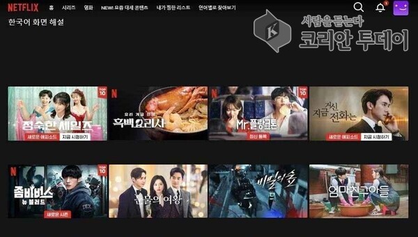 ![]() [코리안 투데이] 넷플릭스 한국어 화면해설 메인 화면. ©넷플릭스 © 두정희 기자 |