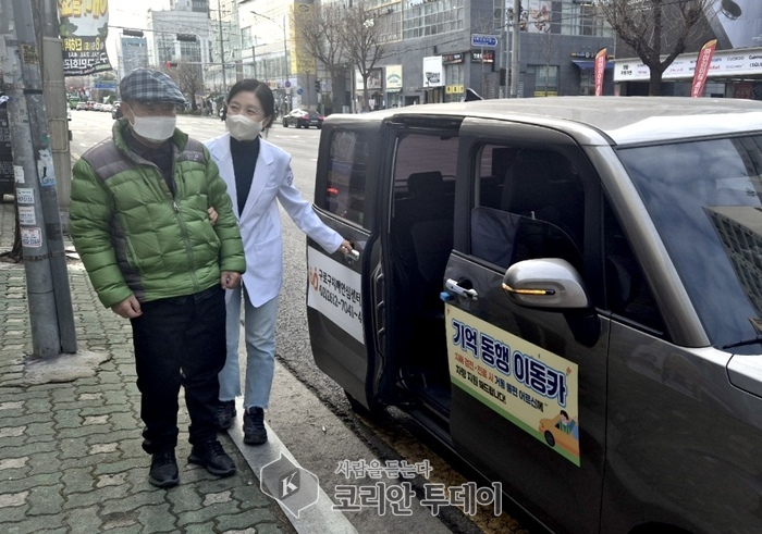 ![]() [코리안투데이] 사진 구로구 언론팀 제공 구로구 관계자가 ‘기억 동행 이동카’를 이용해 어르신과 이동하고 있다. © 박수진 기자 |