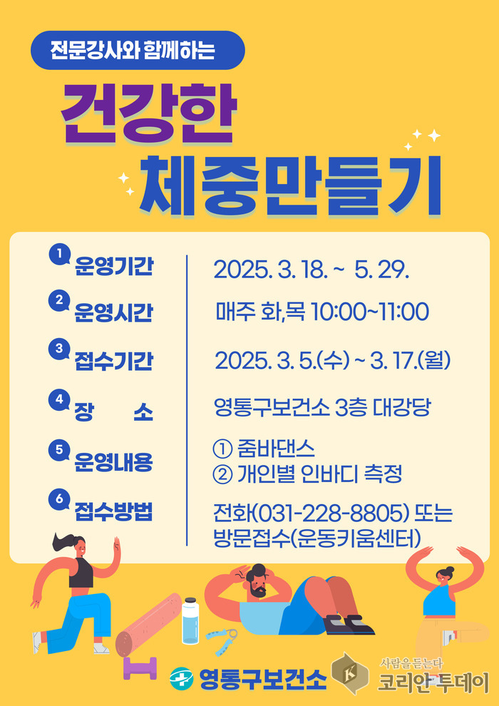 ![]() [코리안투데이] 건강한 체중만들기 프로그램 참가자 모집 © 양숙희 기자 |