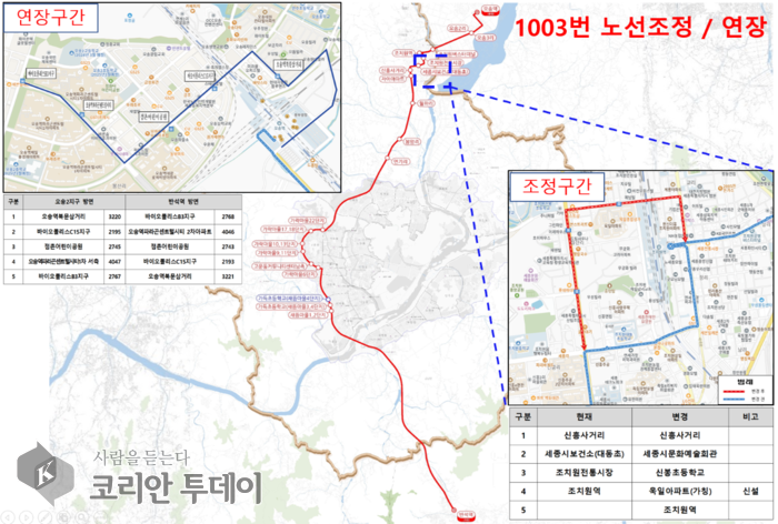 1003번 노선 변경 및 운행 일정에 대한 자세한 정보는 세종시청 공식 누리집(www.sejong.go.kr)에서 확인할 수 있다.