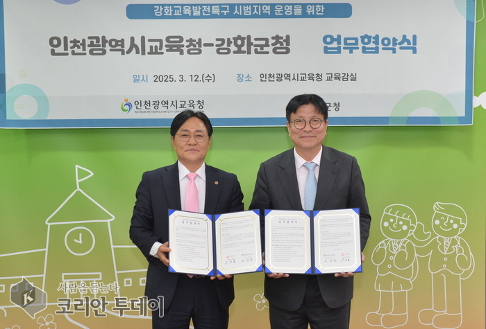 한편, 강화군은 지난해 교육발전특구 시범지역으로 선정됐다. 이번 협약을 계기로 강화군과 인천시교육청은 실무협의회를 운영하며 추가적인 교육 발전 사업을 지속적으로 발굴해 나갈 계획이다.