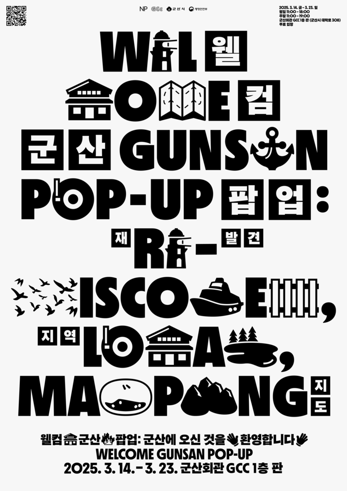 《웰컴 군산 팝업》에서는 다양한 체험형 콘텐츠를 제공한다. 먼저, 군산의 특색을 담아 ‘딩벳(dingbat, 그림 문자)’을 활용한 빙고 게임을 즐길 수 있으며, 5.5m x 8m 크기의 대형 ‘웰컴 군산 지도’도 마련되어 있어 방문객들이 군산의 주요 장소를 한눈에 볼 수 있다. 또한, 군산의 맛집 메뉴를 추천받을 수 있는 자판기가 설치되어 있으며, 탐조지도, 동네 서점 지도 등 시민들이 직접 발굴한 다양한 군산 지도를 전시한 서재 공간도 조성된다. 여기에 더해 편한 의자에 누워 군산을 배경으로 한 영화 음악을 감상할 수 있는 공간도 운영된다.