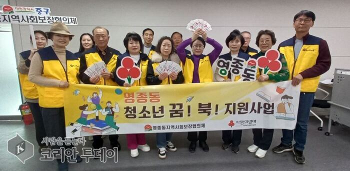 ![]() [코리안투데이] ‘청소년 꿈! 북! 지원사업’ 에 참여한 영종동 지역사회보장협의체 © 김미희 기자 |