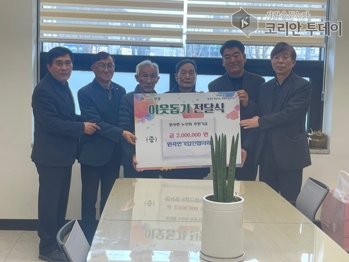 원곡면기업인협의회가 지역 어르신 복지 향상을 위해 원곡면 노인회에 성금 200만 원을 전달했다.