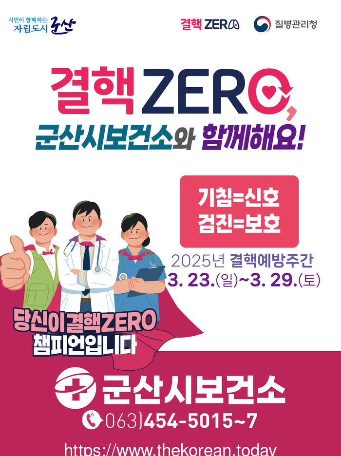 군산시보건소가 오는 3월 23일부터 29일까지 ‘결핵 예방 주간’을 운영하며 결핵 예방과 조기 검진의 중요성을 강조하는 다양한 홍보 활동을 펼친다.