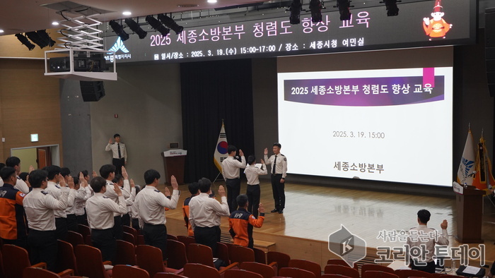 세종소방본부(본부장 박태원)가 19일 시청 4층 여민실에서 소방본부 및 소방서 직원 80명을 대상으로 반부패 청렴 교육을 실시했다. 이번 교육은 공직사회에서 요구되는 청렴 의식을 높이고, 시민들에게 더욱 신뢰받는 소방 서비스를 제공하기 위해 마련됐다.