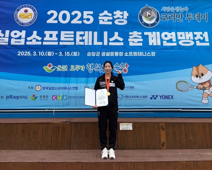 안성시청 소프트테니스팀 소속 김유진 선수가 ‘2025 순창 한국실업소프트테니스 춘계연맹전’ 여자 개인단식에서 우승을 차지했다.
