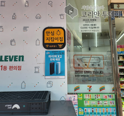 [코리안투데이] 사진 구로구 언론팀 제공  안심지킴이집 편의점 입구에 부착된 현판 사진 © 박수진 기자