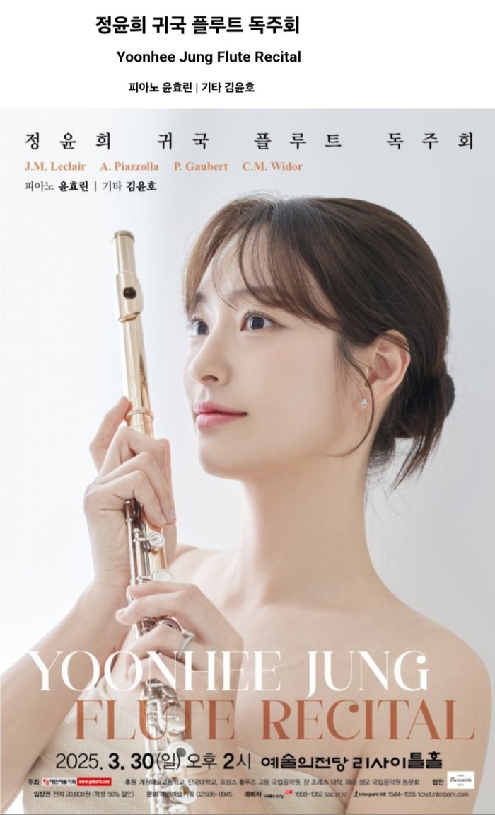 피아노에는 윤효린, 기타에는 김윤호가 협연자로 나서며, 정윤희의 플루트와 환상의 앙상블을 이룰 예정이다. 특히 프랑스 뚤루즈 고등 국립음악원과 장 조르다노 마르세유 고등 국립음악원을 졸업한 정윤희는 이번 무대를 통해 자신만의 해석과 호흡으로 한국 관객들과 첫 인사를 나눈다.