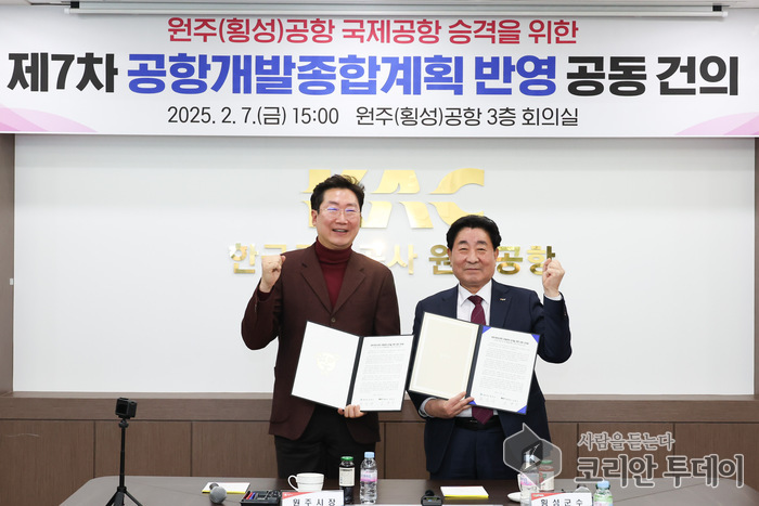 원강수 원주시장과 김명기 횡성군수는 “이번 국제선 유치여건 조성방안이 원주(횡성)공항의 미래 전략이라는 점에서 큰 의미가 있다”며 “강원특별자치도의 적극적인 협력에 깊이 감사드리며, 이번 제안이 지역의 염원과 비전을 담아 반드시 국가 계획에 반영될 수 있도록 노력하겠다”고 강조했다.