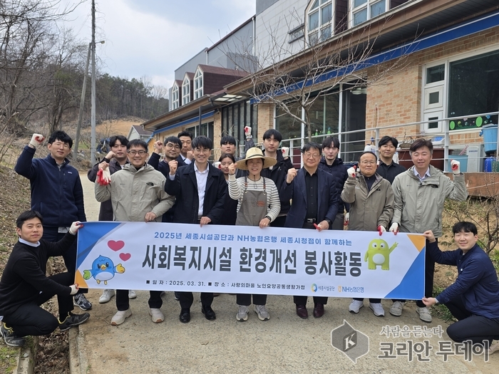 세종특별자치시시설관리공단이 지역사회와 함께 노인요양공동생활가정 환경 개선에 팔을 걷어붙였다. 공단은 NH농협 세종시청지점과 손잡고 ‘사랑의마을’에서 수목 식재와 청결활동을 함께 진행했다.