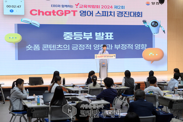 ![]() [코리안투데이] 지난 ‘Y교육박람회 2024 챗GPT영어스피치경진대회’에서 발표 중인 청소년 모습 |