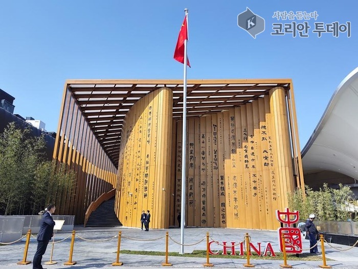 죽간(竹簡)에서 영감을 받아 설계된 중국관은 대나무, 한자, 서책 등의 요소를 활용해 중국 고유의 문화와 미학을 구조적으로 표현했다.