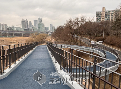구는 서울시와 협의를 통해 시비 10억 원을 확보해 사업을 추진했으며, 특히 어린이와 노약자도 안전하게 산책로를 이용할 수 있도록 완만한 기울기의 램프 형태로 교량을 설계해 보행 편의성과 안전성을 높였다.