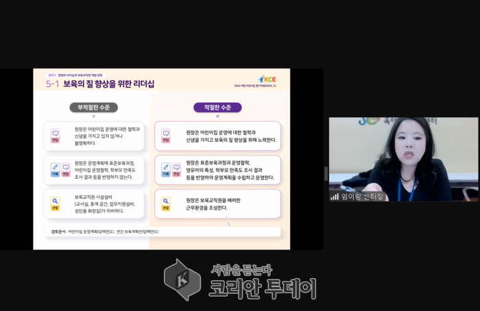 ![]() [코리안투데이] 2024 어린이집 평가제 개편 대응 실시간 교육 © 이윤주 기자 |