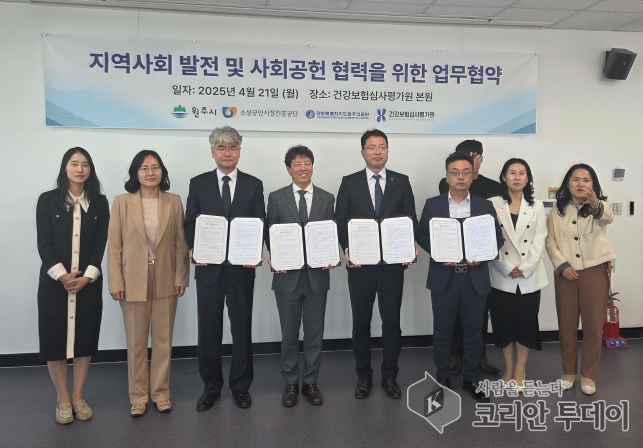 원주시는 지난 4월 21일 건강보험심사평가원(원장 강중구), 소상공인시장진흥공단(이사장 박성효), 원주의료원(원장 권태형)과 함께 ‘전통시장·소상공인 지원’을 위한 4자 업무협약을 체결했다.