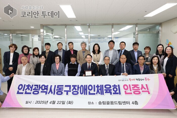 인천 동구가 장애인 체육 활성화를 위한 제도적 기반을 다지며 지역 사회에서 선도적인 역할을 다짐했다. 동구장애인체육회는 지난 22일 인천광역시장애인체육회로부터 공식 지회 인증패를 수여받으며, 인천 지역 최초로 인증을 획득한 장애인체육회로서의 위상을 확립했다.